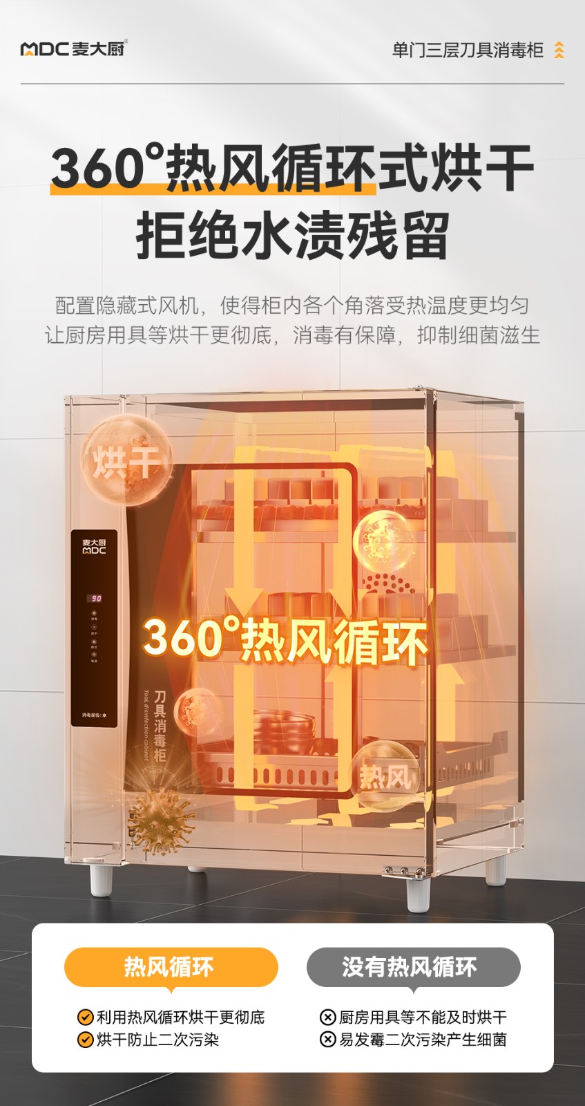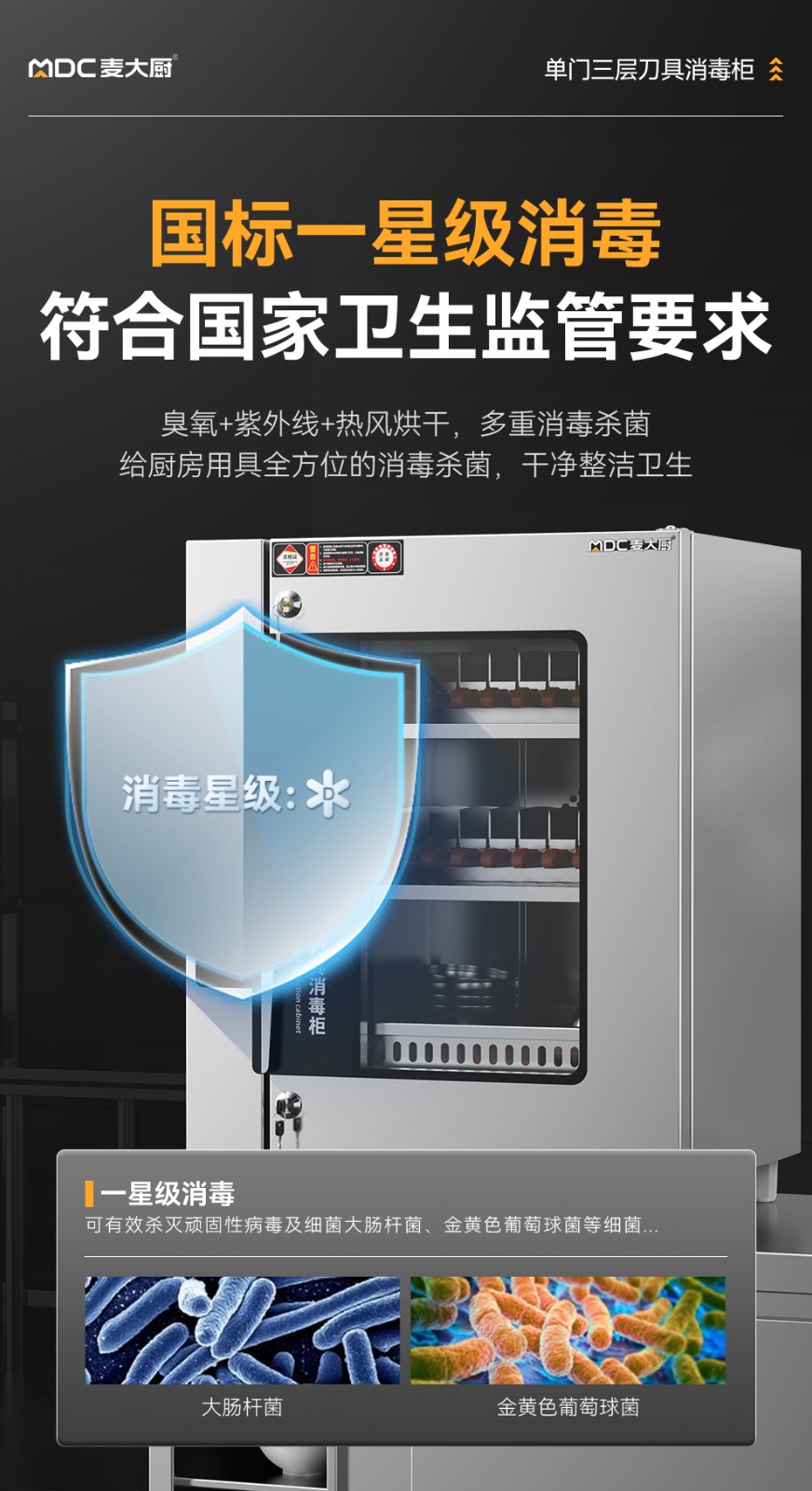 麦大厨智能款单门三层臭氧紫外线热风循环消毒柜
