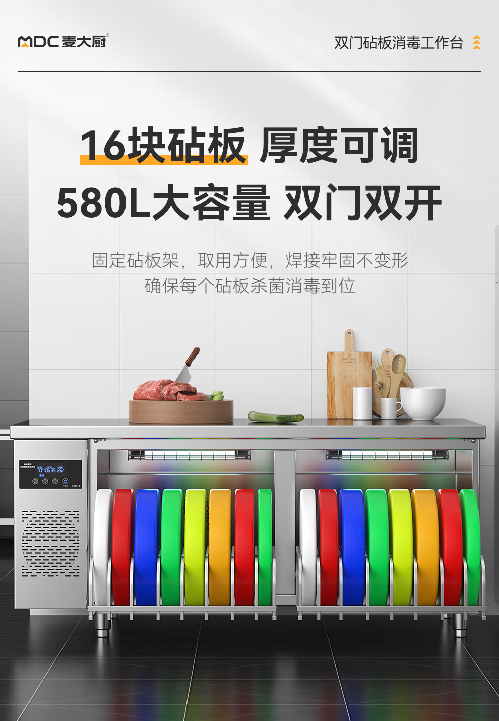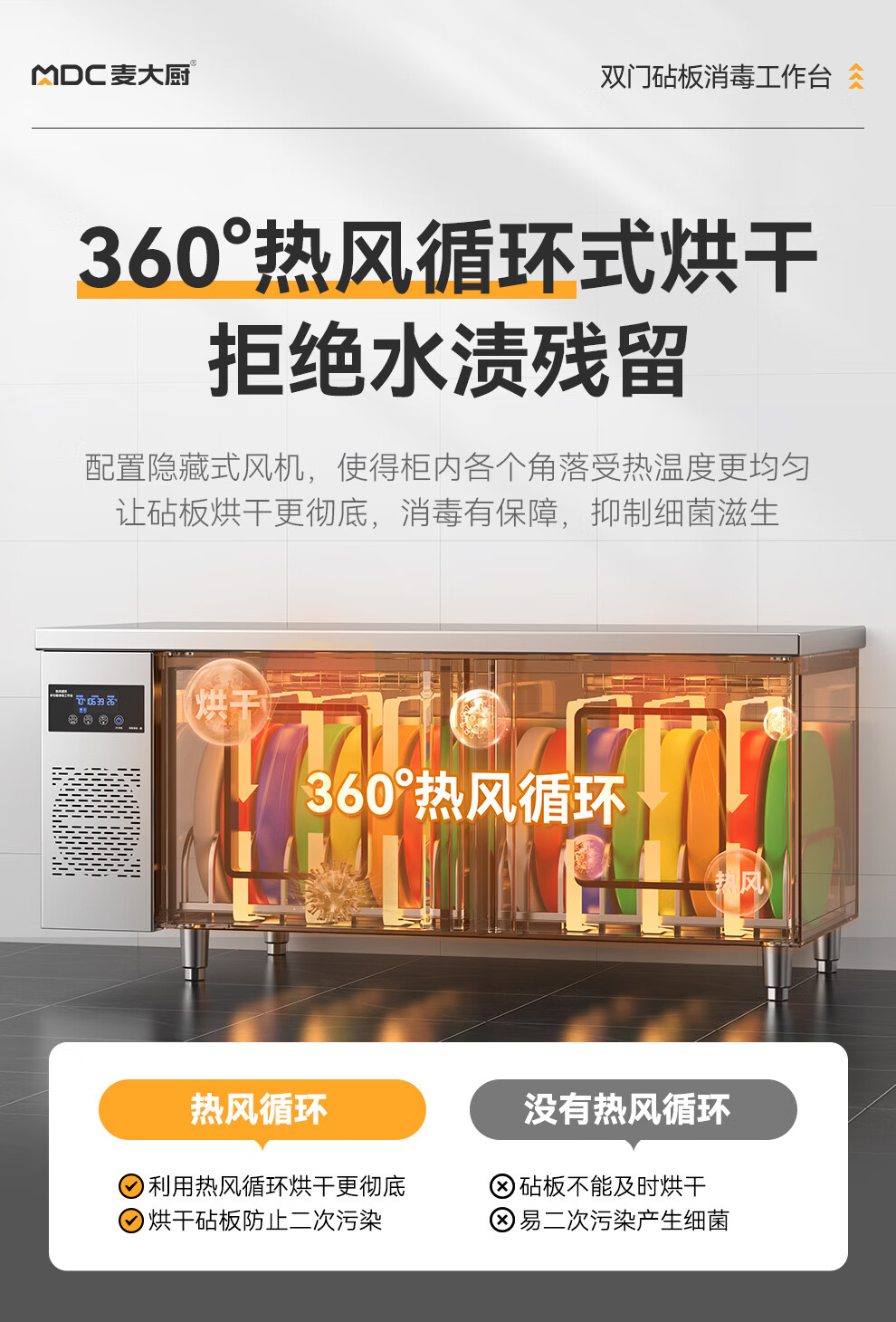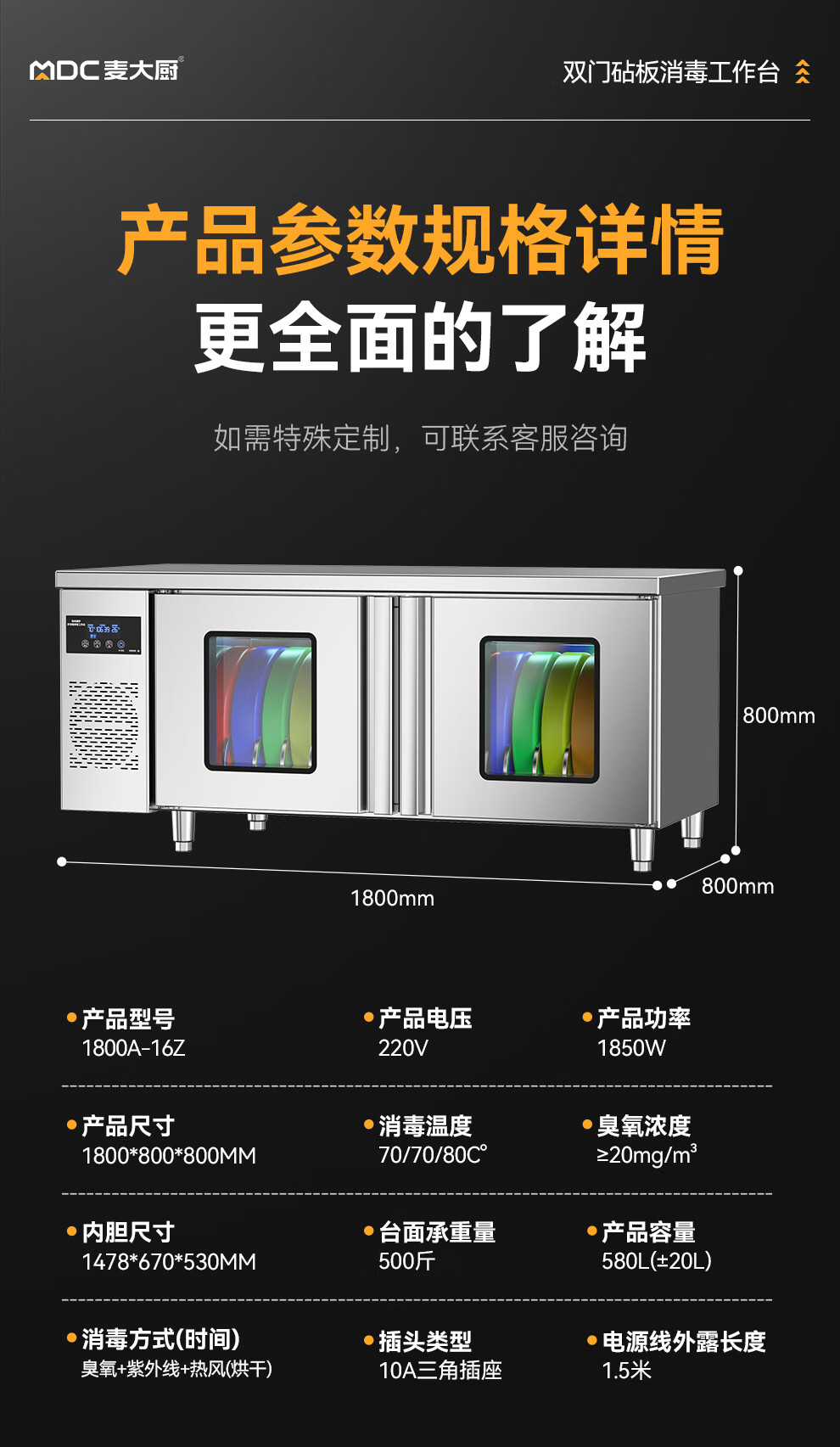 麦大厨1.8m双门砧板组合臭氧紫外线热风循环消毒工作台