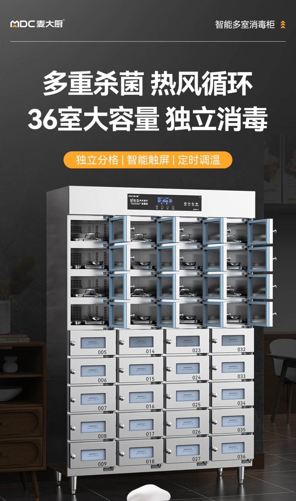 麦大厨36室智能触屏型热风循环中温消毒柜3.4KW