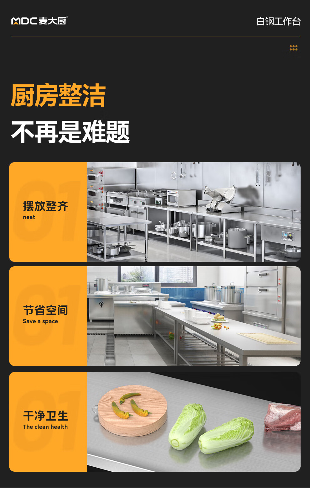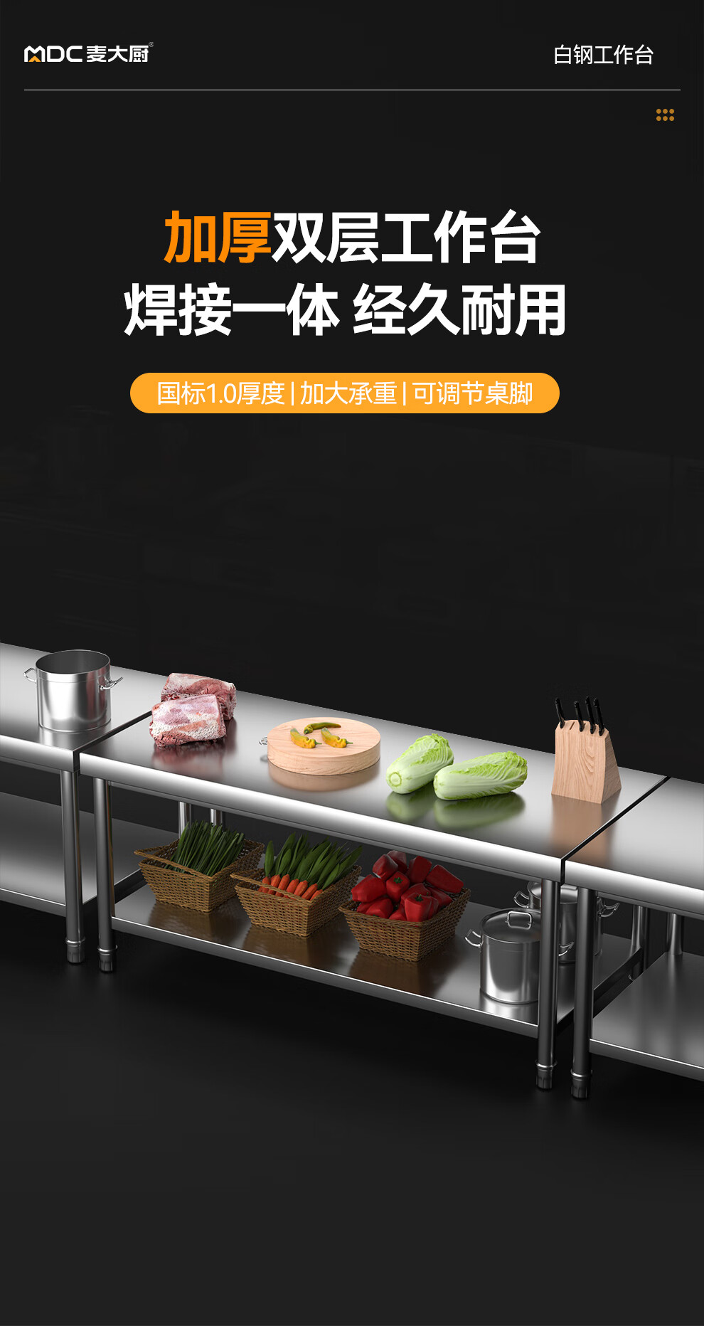 麦大厨1.8m升级款不锈钢工作台打荷台双层工作台