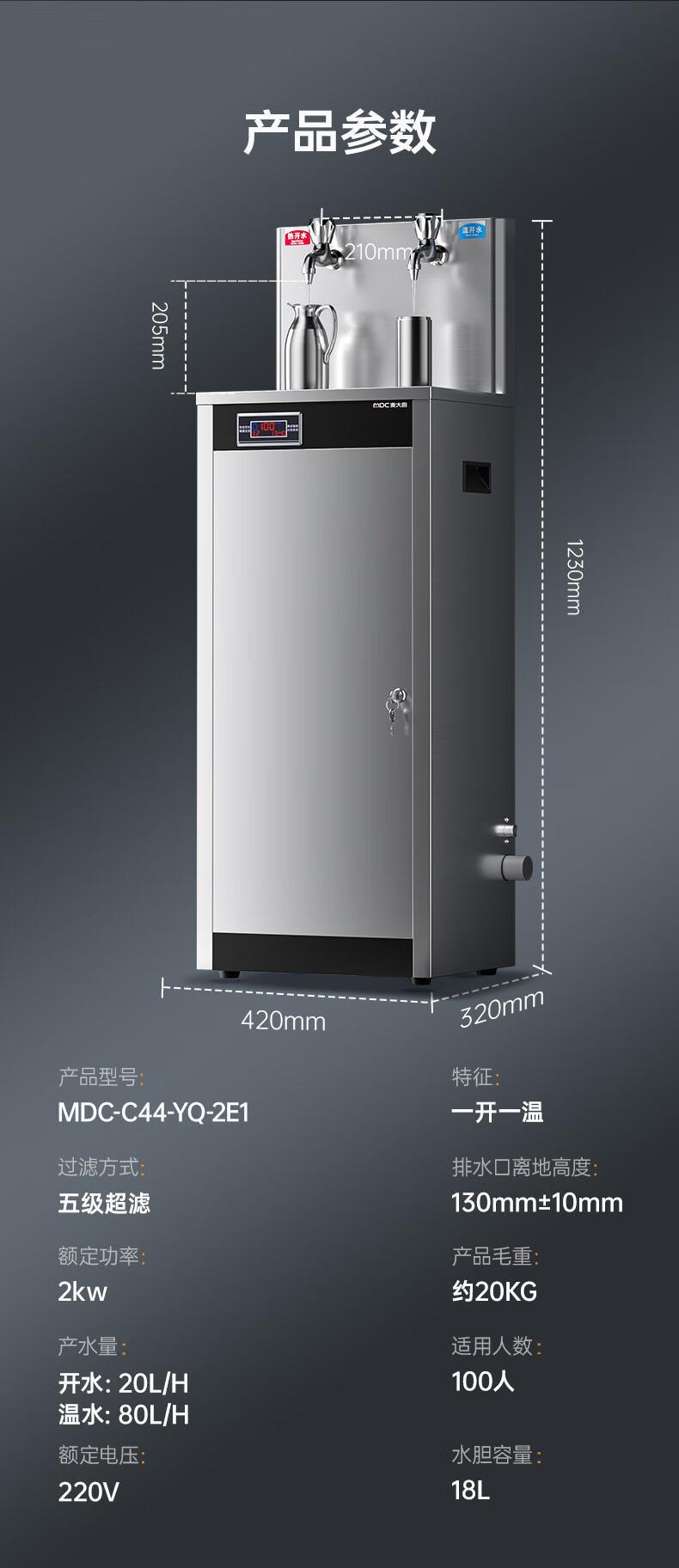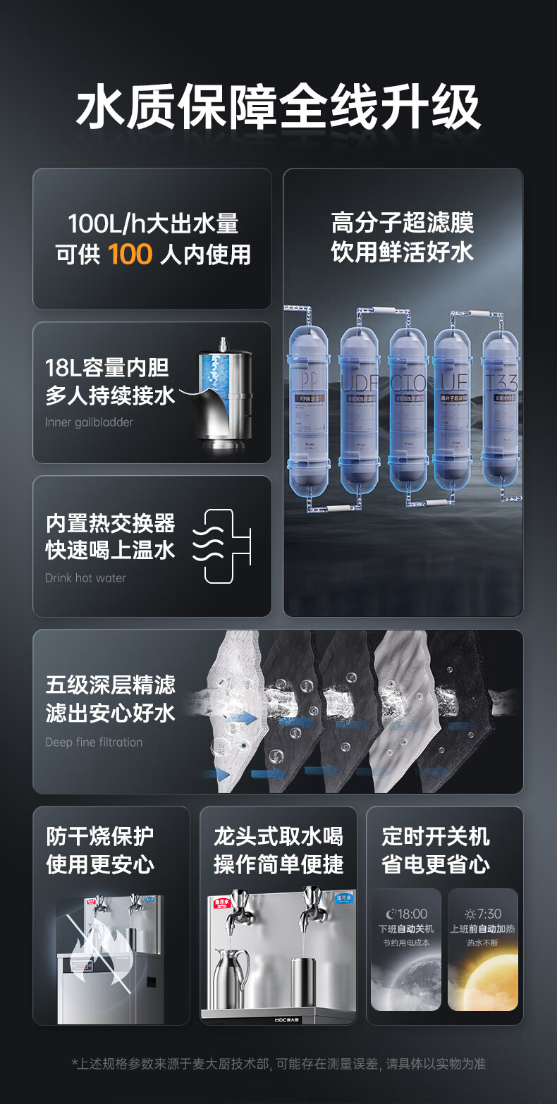 麦大厨2KW高背龙头饮水机一开一温快接五级超滤直饮机