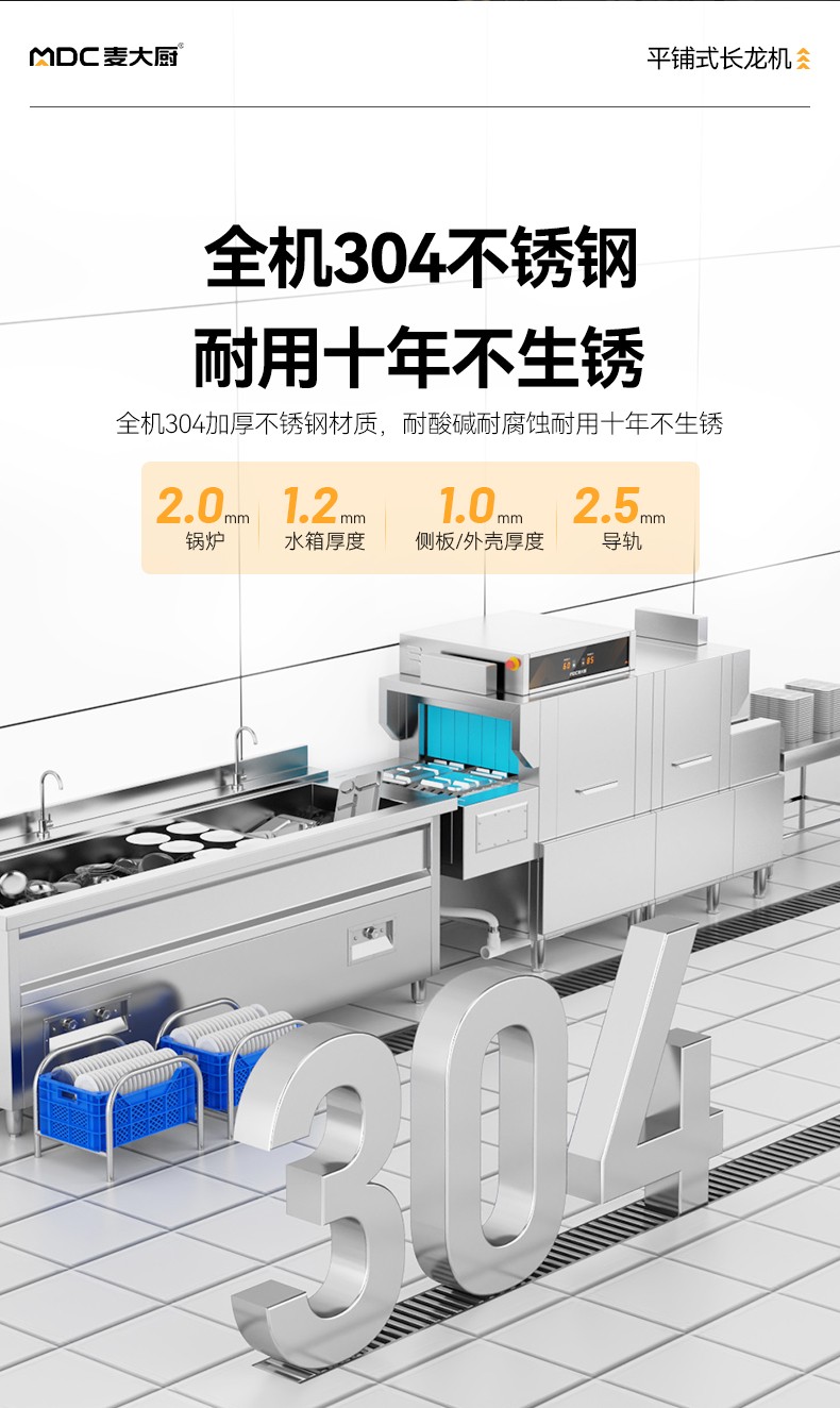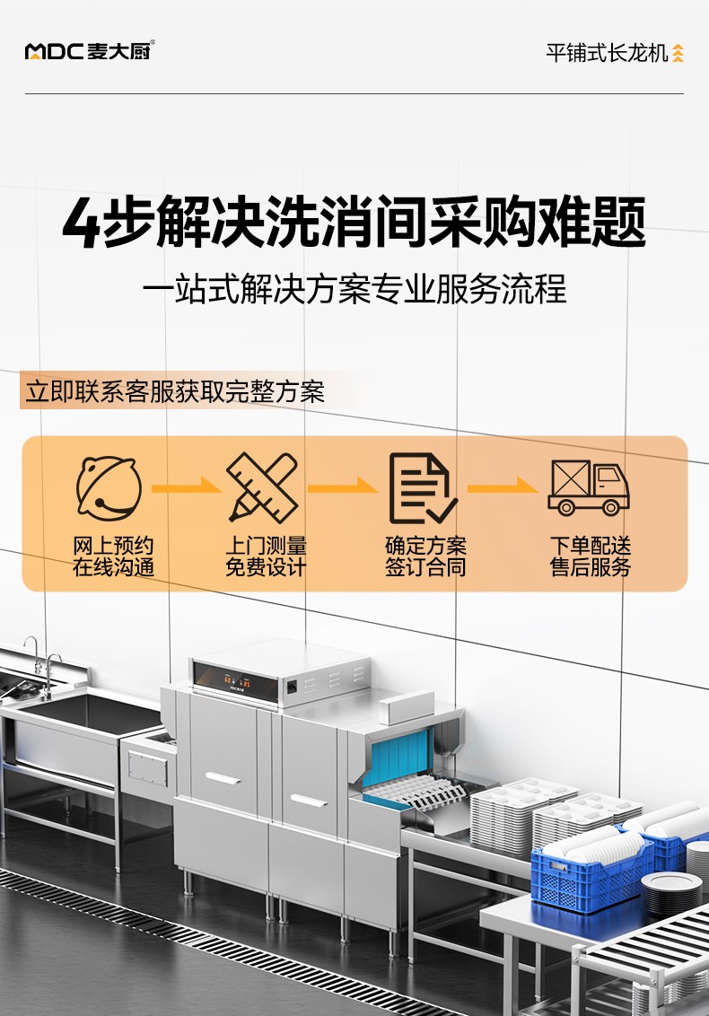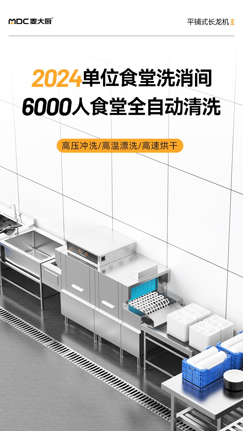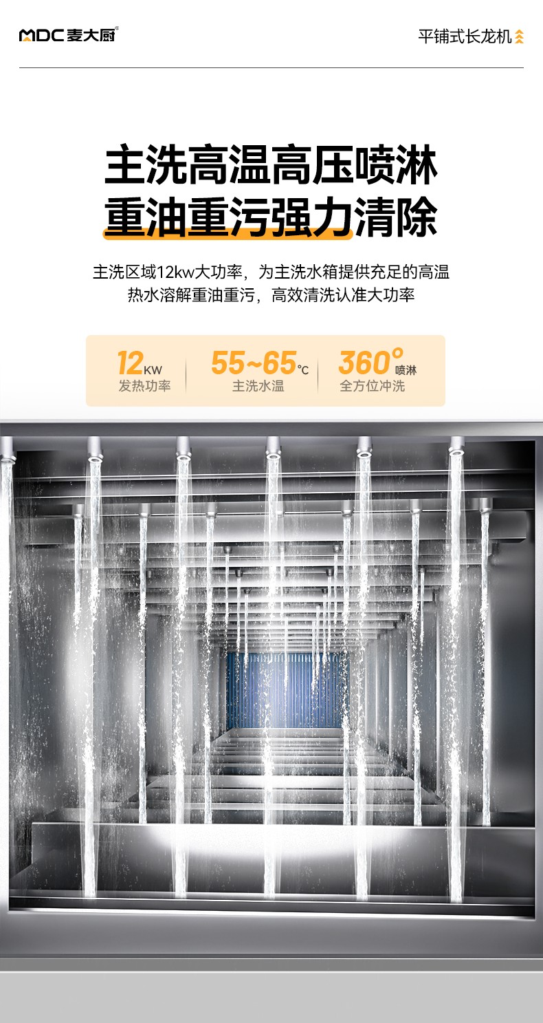 麦大厨2.3m豪华款平放式单缸双喷淋商用全自动洗碗机