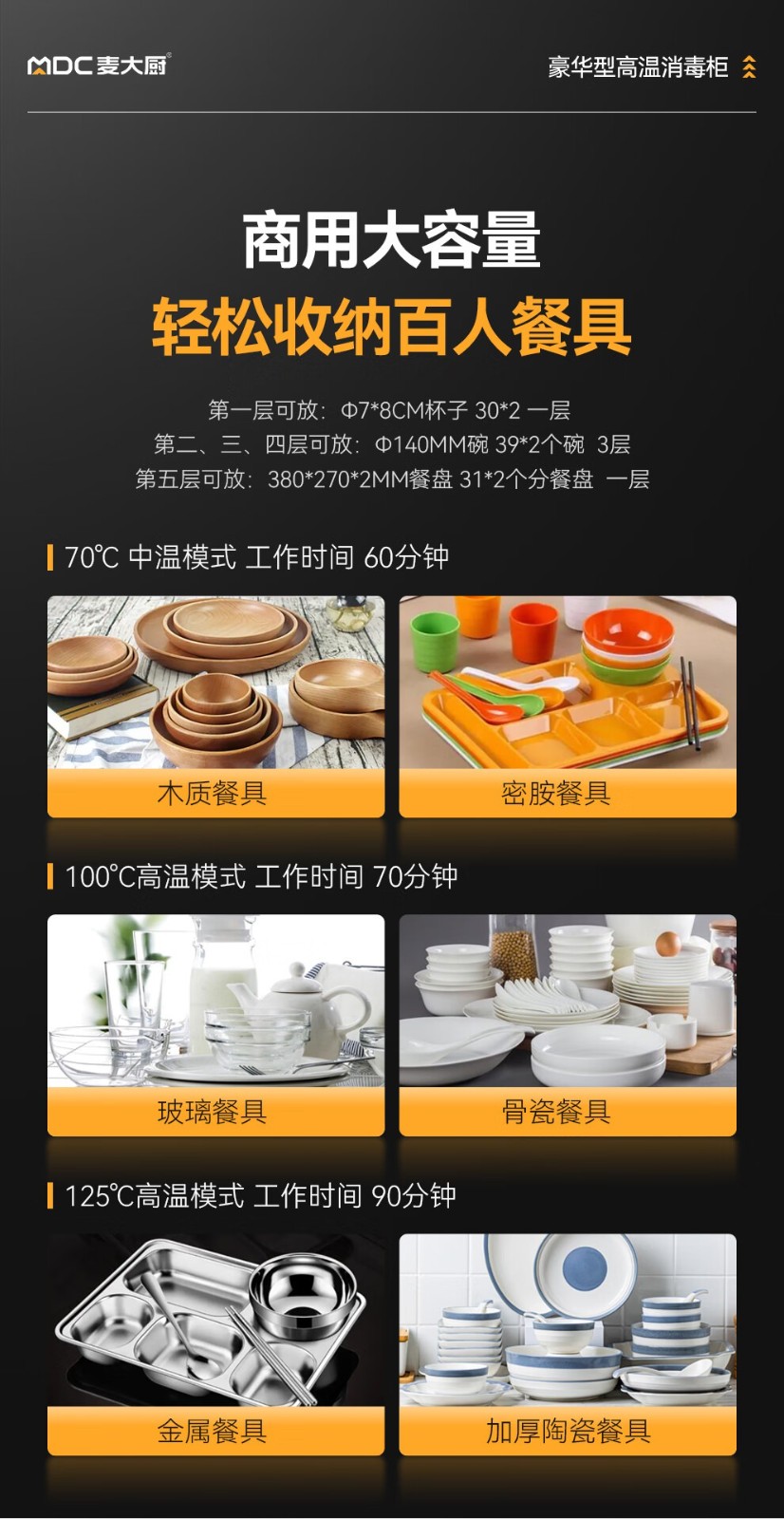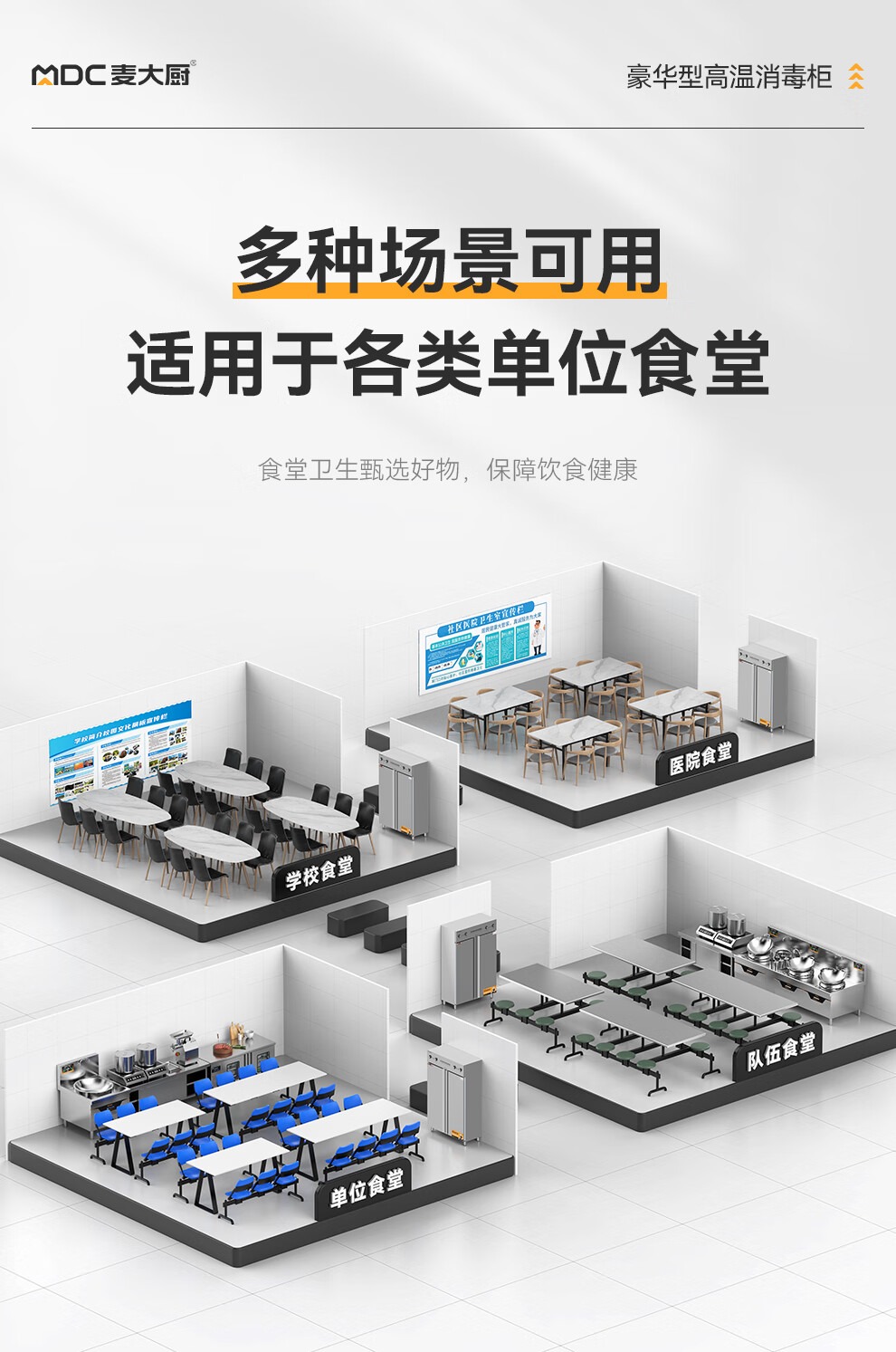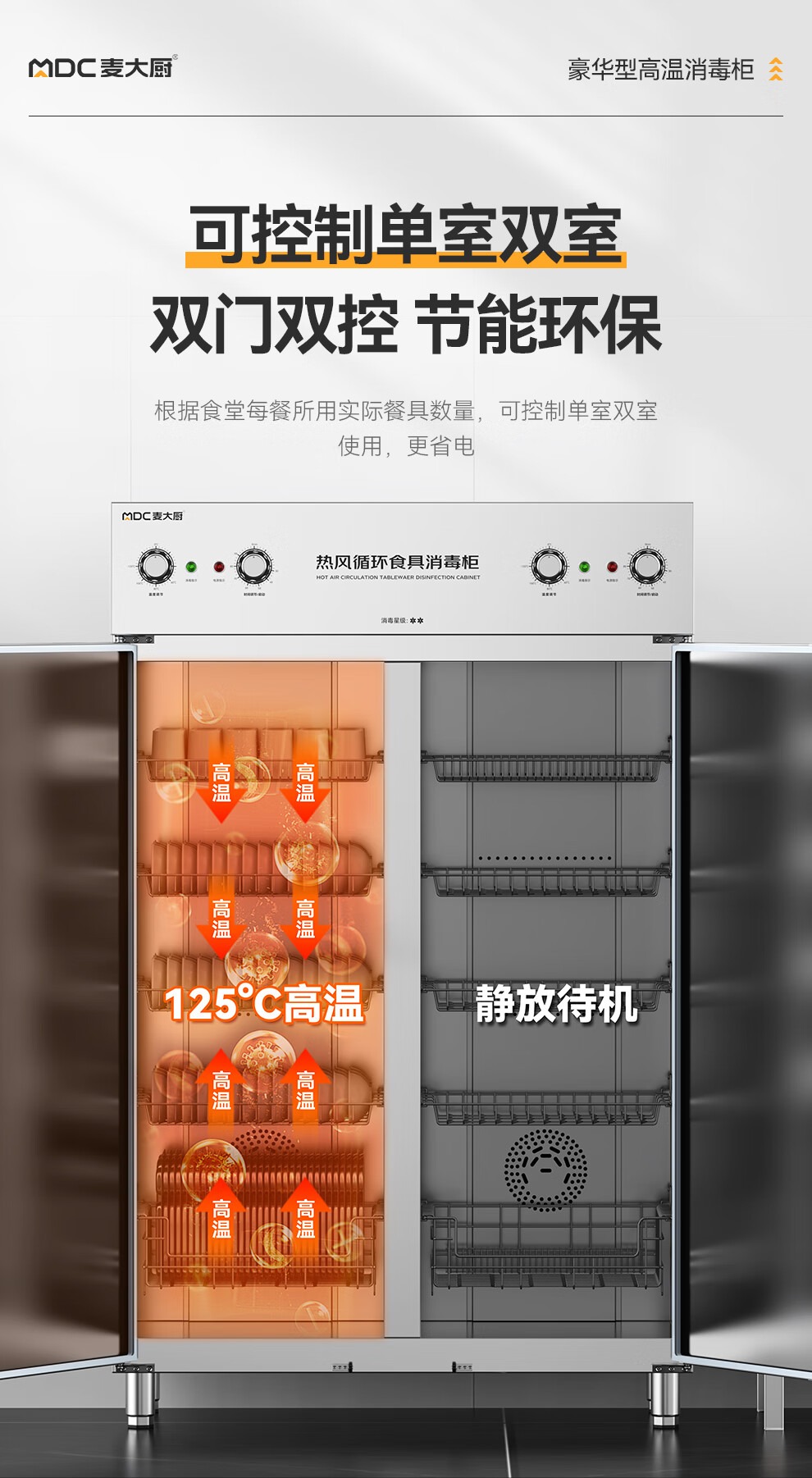 麦大厨豪华旋钮型双门双控5层热风循环高温消毒柜1870W