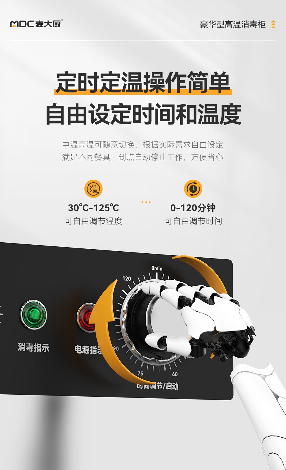 麦大厨豪华旋钮型双门双控4层热风循环高温消毒柜1870W