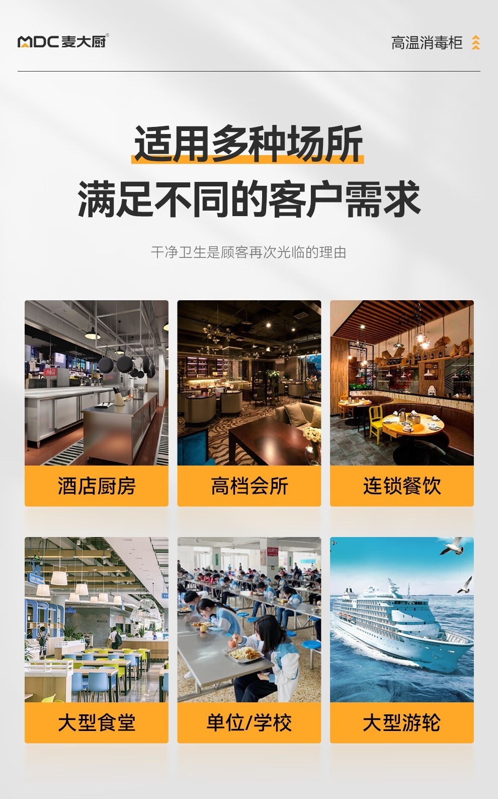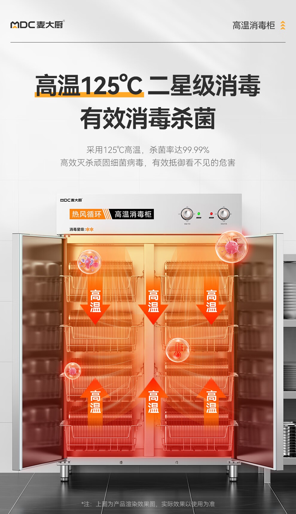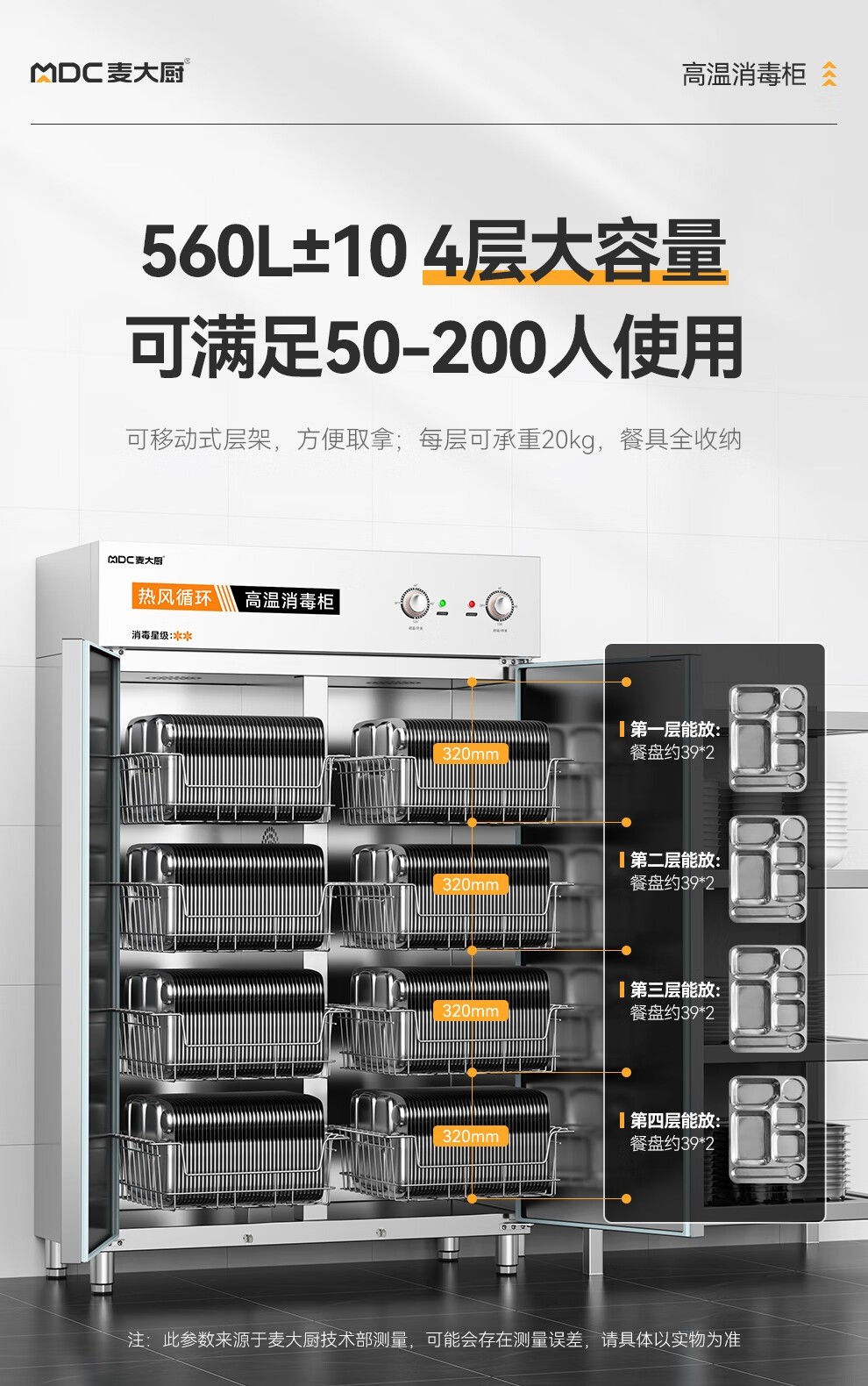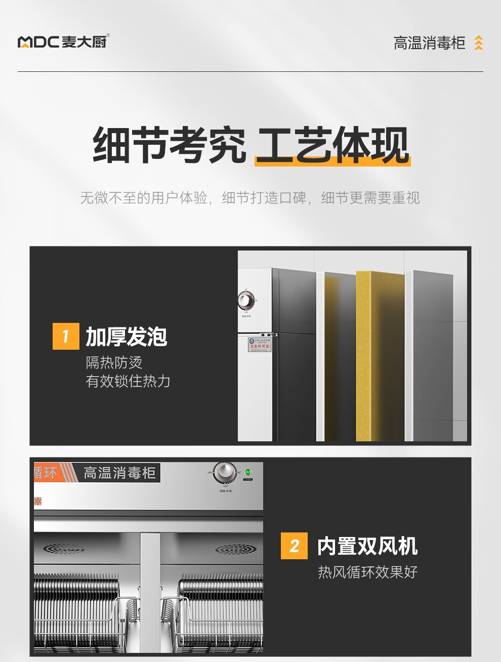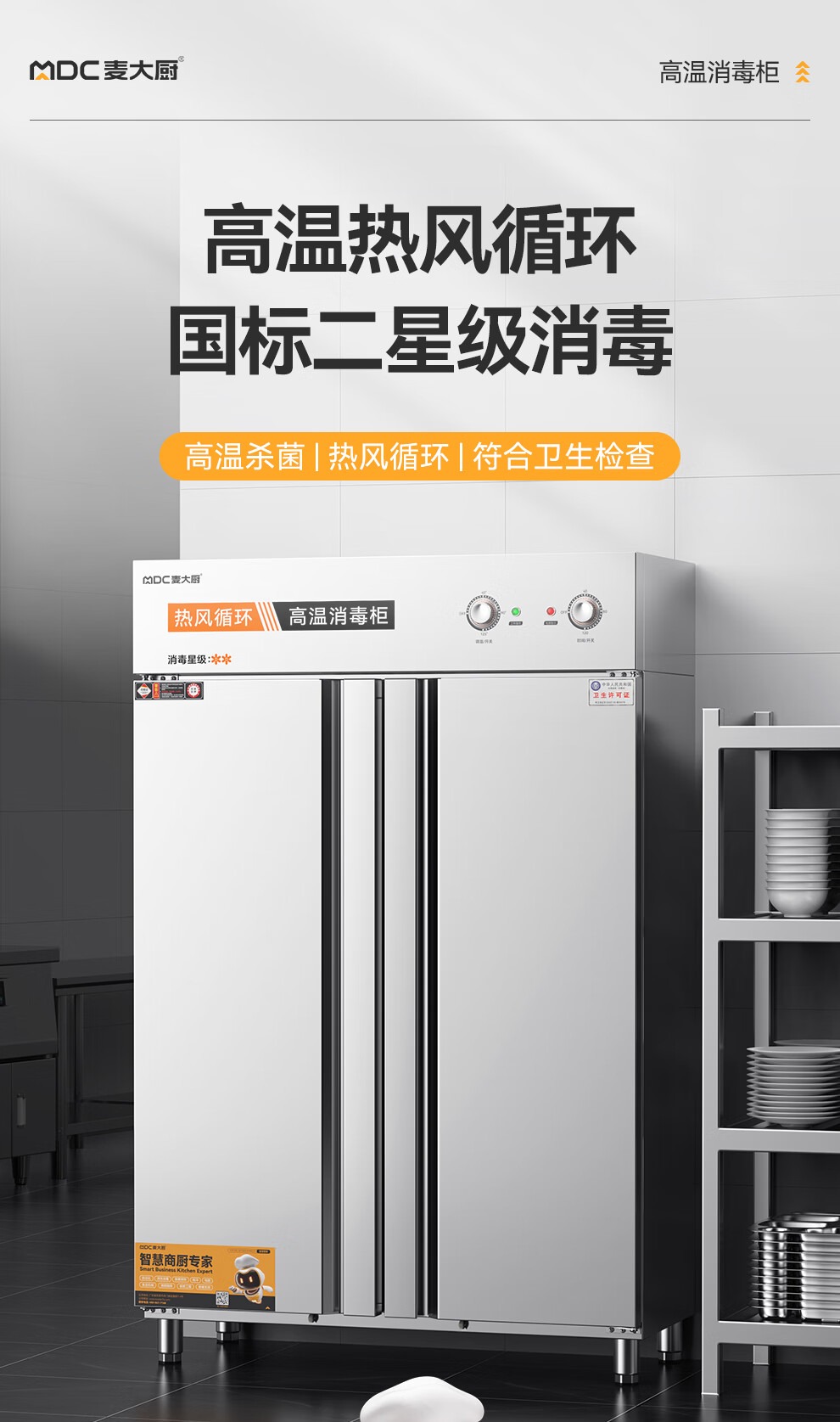 麦大厨经典旋钮款双门单控4层热风循环高温消毒柜1550W