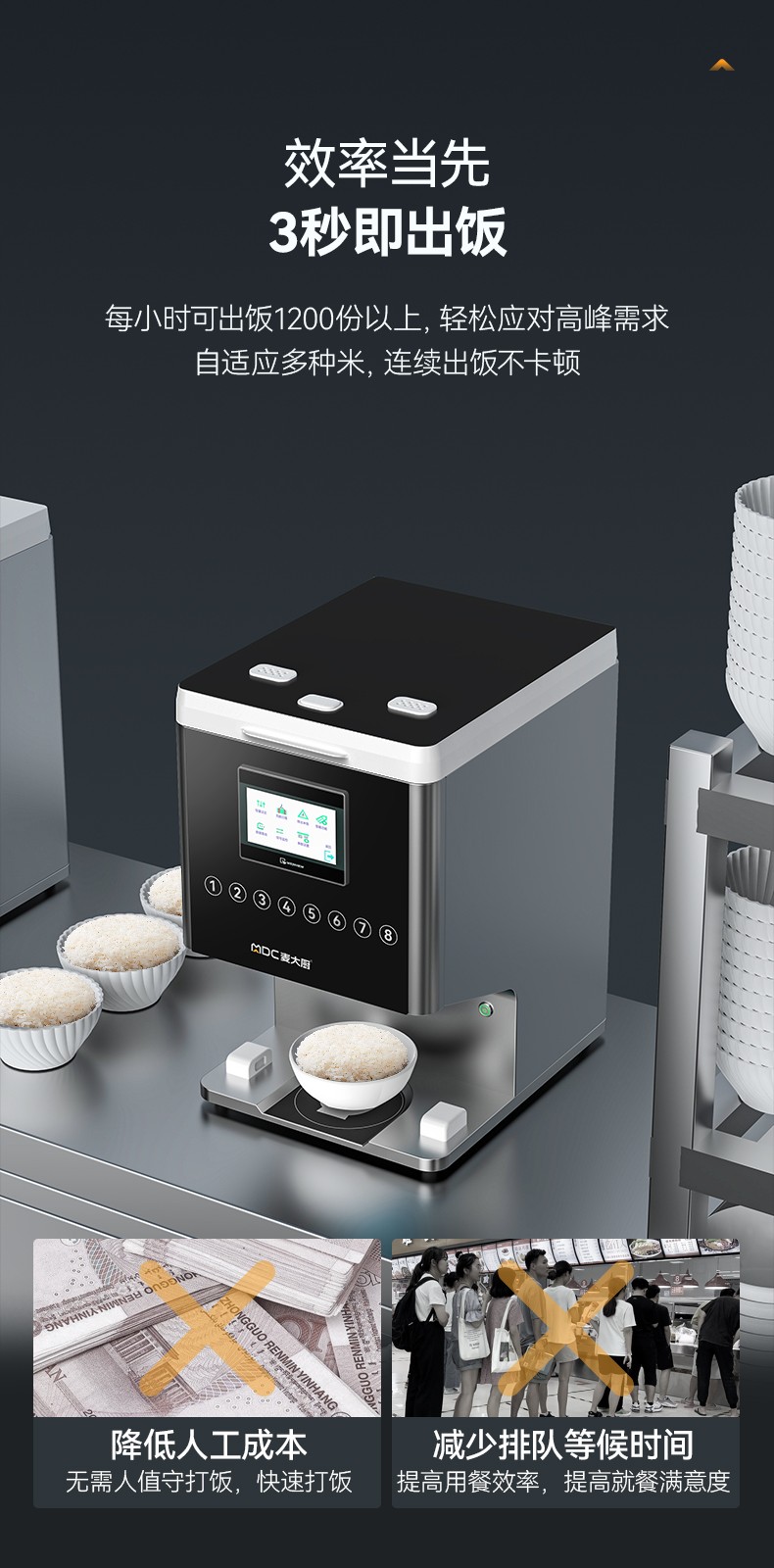 出饭效率:3秒/次,1200份/小时