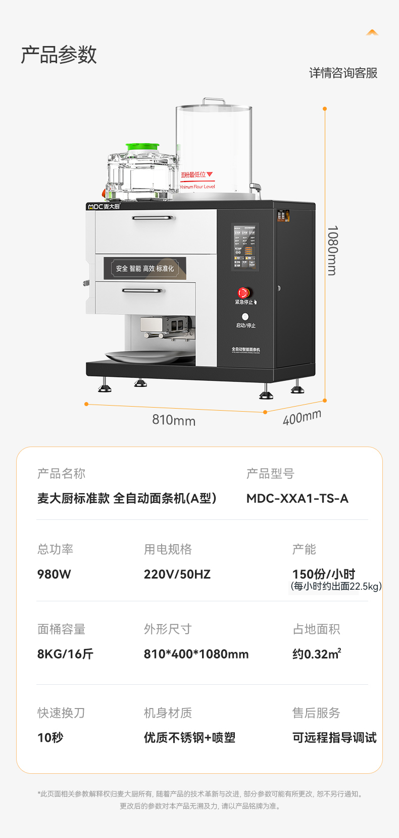 - 更多MDC商用面条机规格咨询在线客服