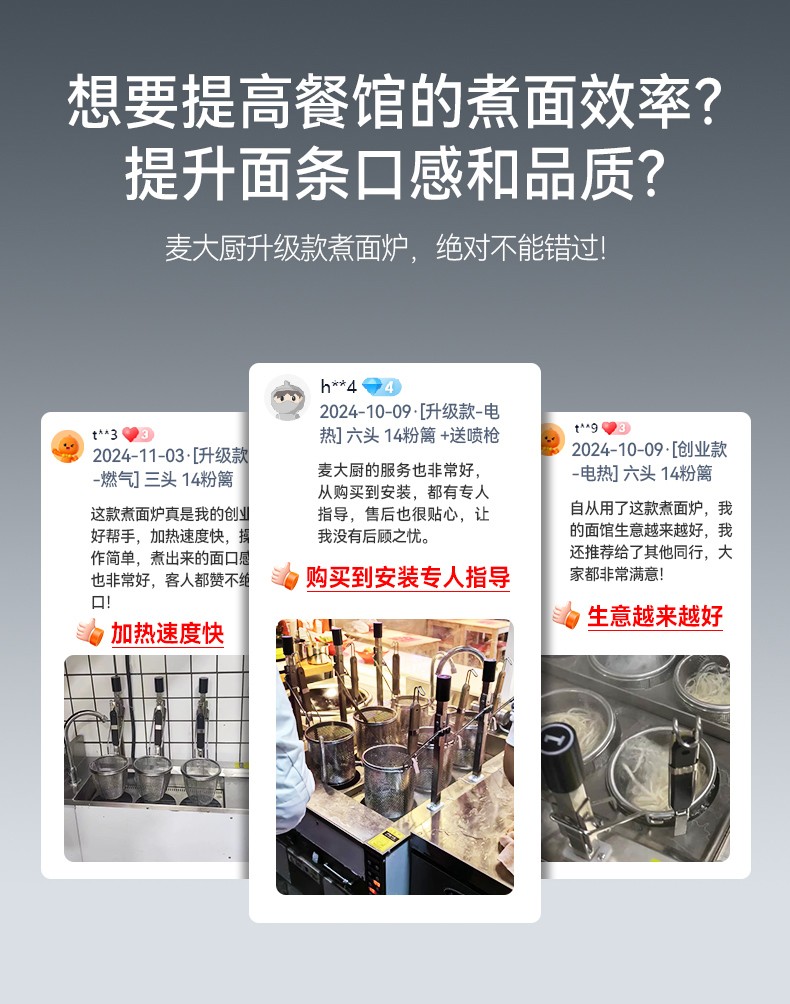 麦大厨单缸升级款电热3头14粉篱自动煮面炉商用