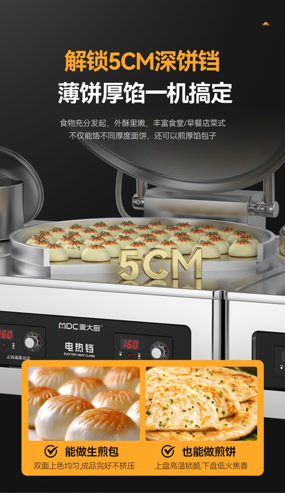 麦大厨220V食堂烙饼机数显标准款商用电饼铛(不锈钢5cm)
