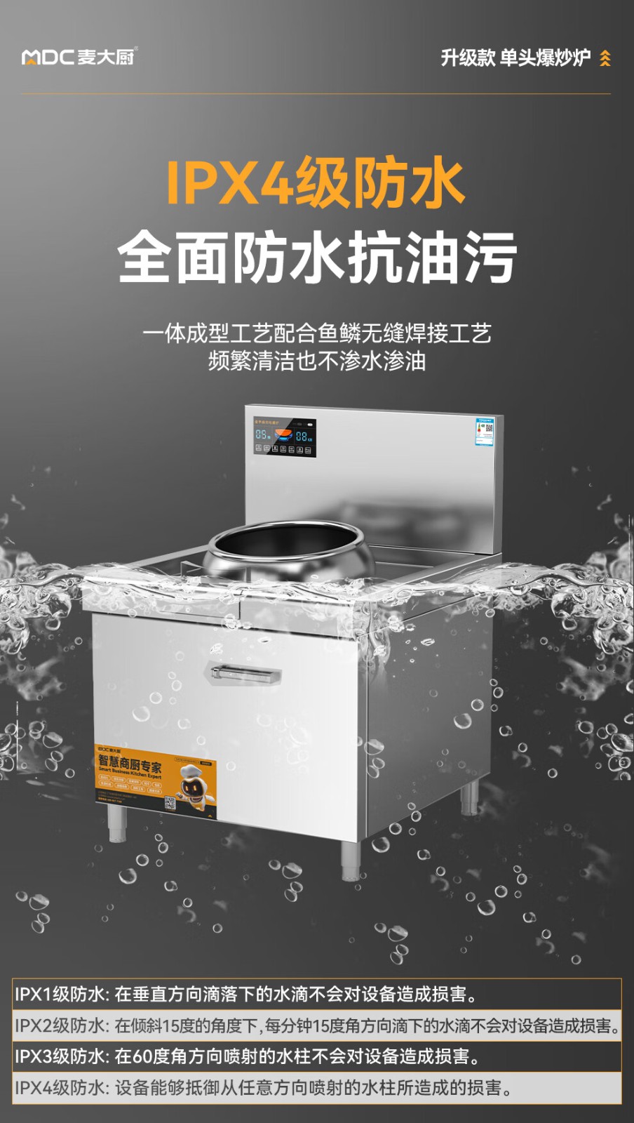 麦大厨食堂大火力电磁灶升级款单头无尾小炒炉商用15kw