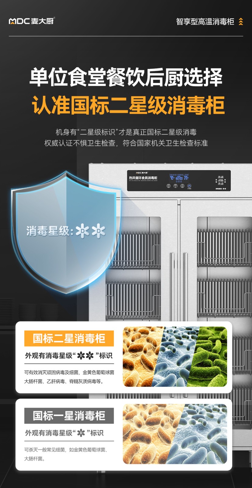 麦大厨智享型4层双门单控热风循环高温食具大透窗消毒柜