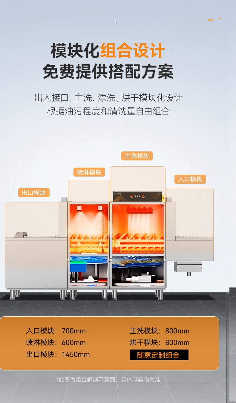 麦大厨旗舰款2.95m斜插式单缸单喷淋长龙式洗碗机