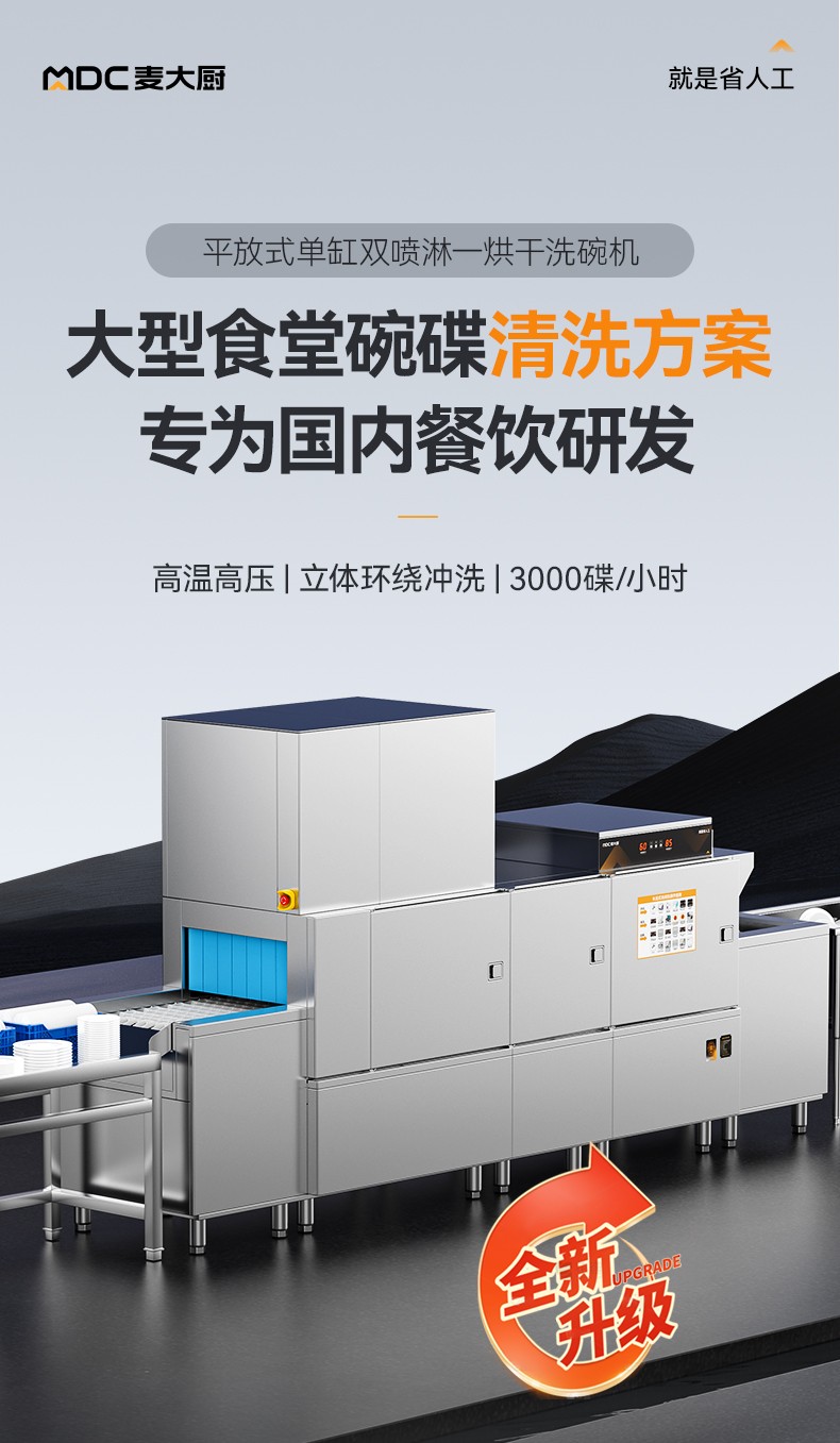 麦大厨旗舰款3.9m平放式单缸双喷淋单烘干洗碗机