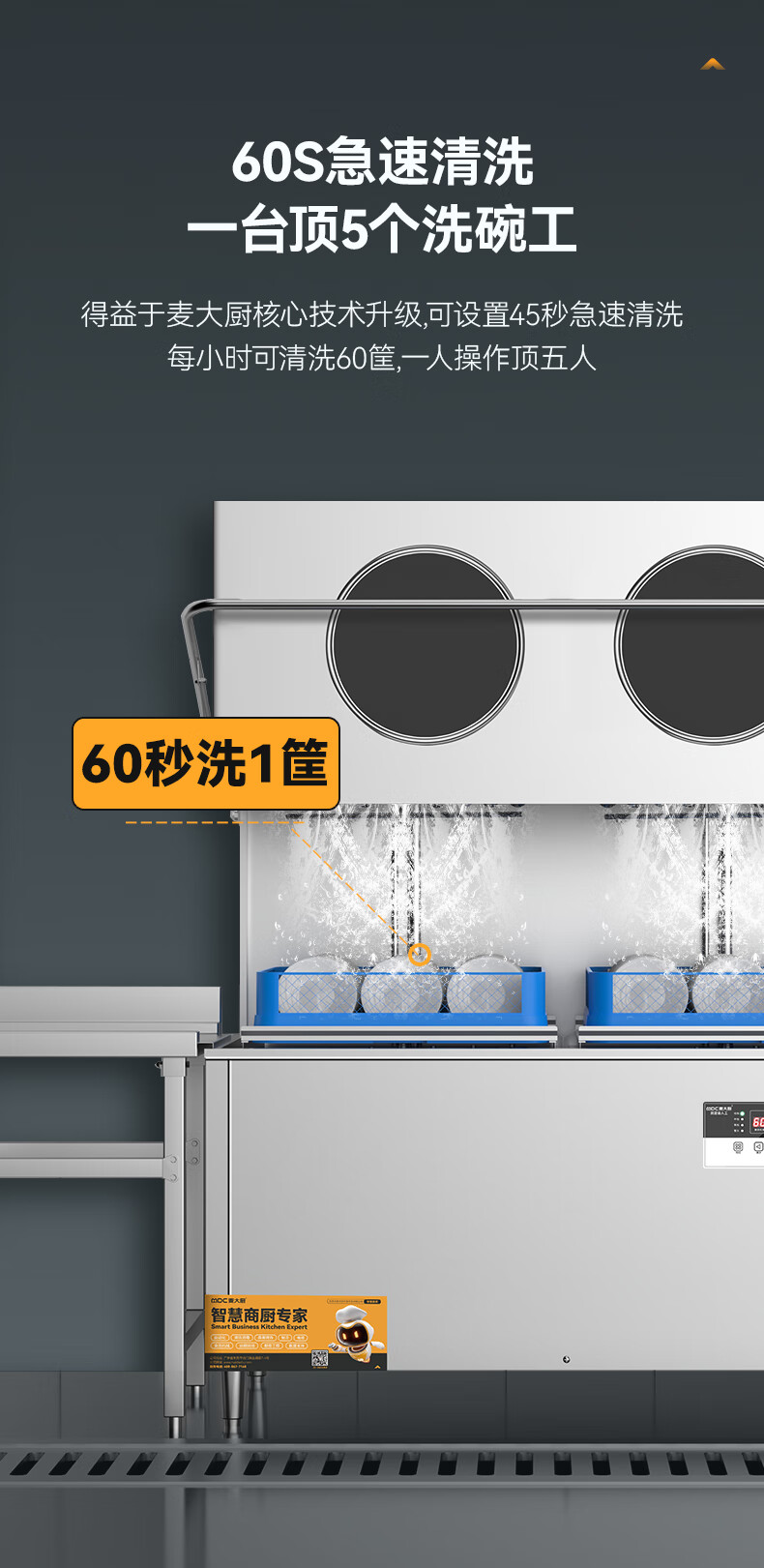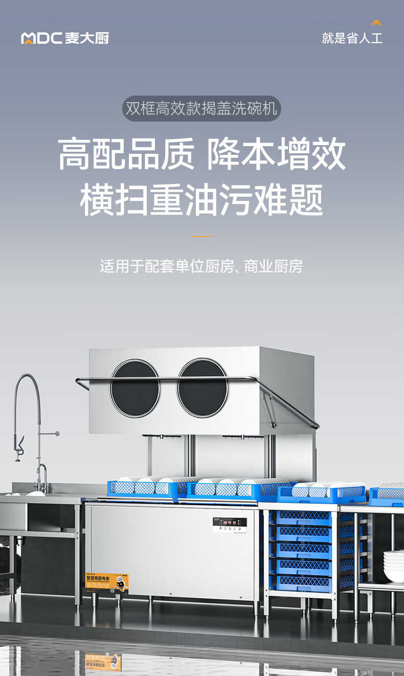 麦大厨商用全自动双框高效款揭盖式洗碗机商用20KW