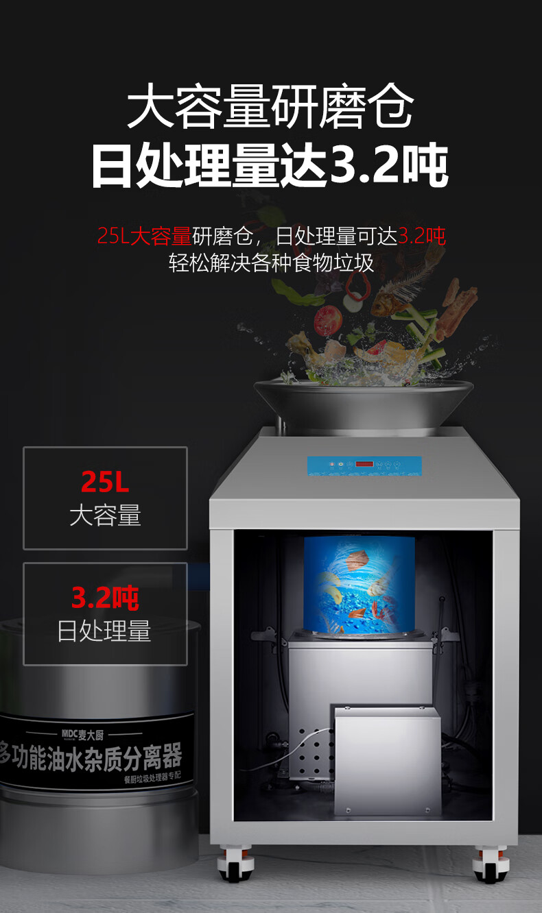 麦大厨垃圾处理器商用厨余干湿垃圾潲水粉碎机3200C
