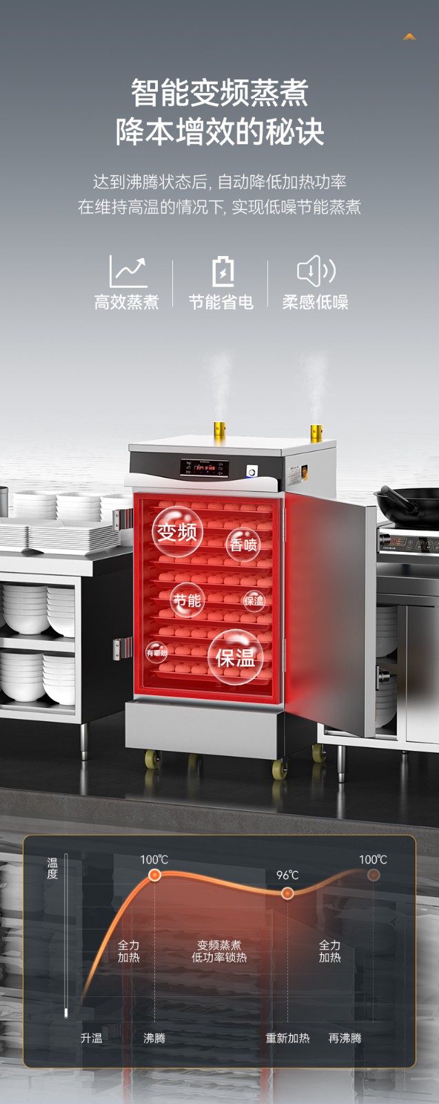 麦大厨商用蒸饭柜10盘变频款智能电热蒸箱蒸饭车全自动蒸柜