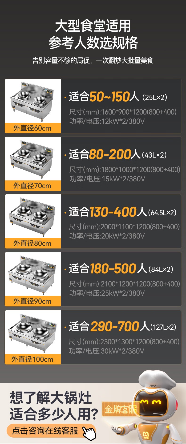 - 更多MDC商用大锅灶规格咨询在线客服