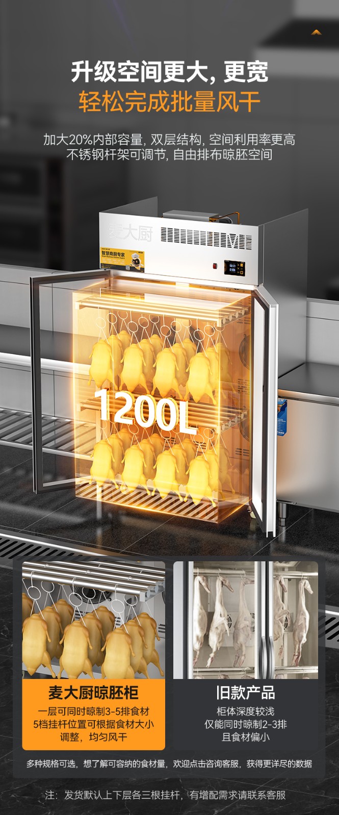 麦大厨商用晾胚柜节能至尊款1680W双门烤鸭风干柜
