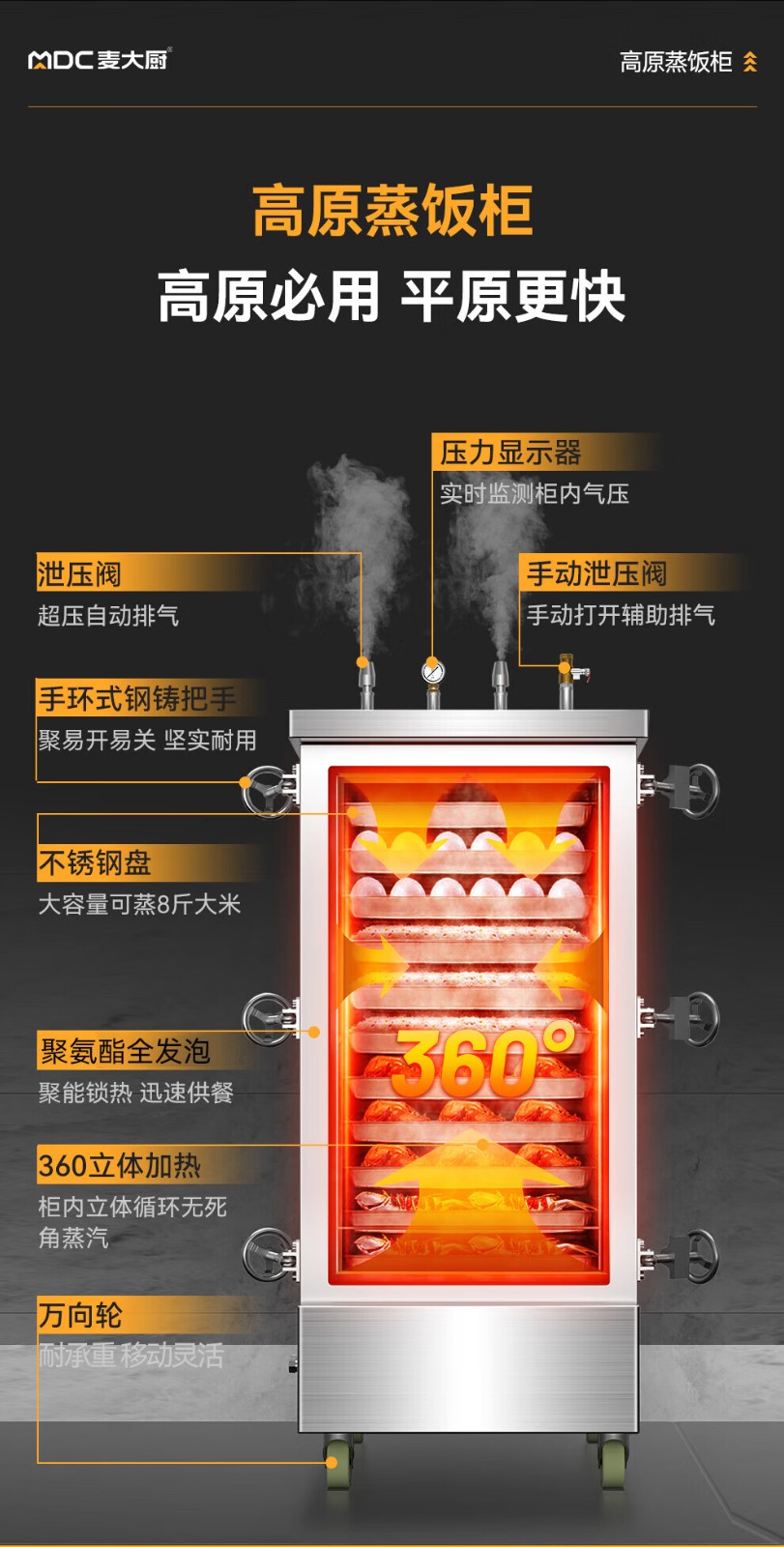 MDC商用高原蒸柜燃气款48盘双门蒸饭柜