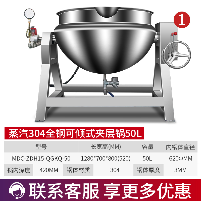 MDC商用夹层锅蒸汽全钢可倾式夹层锅50至600L