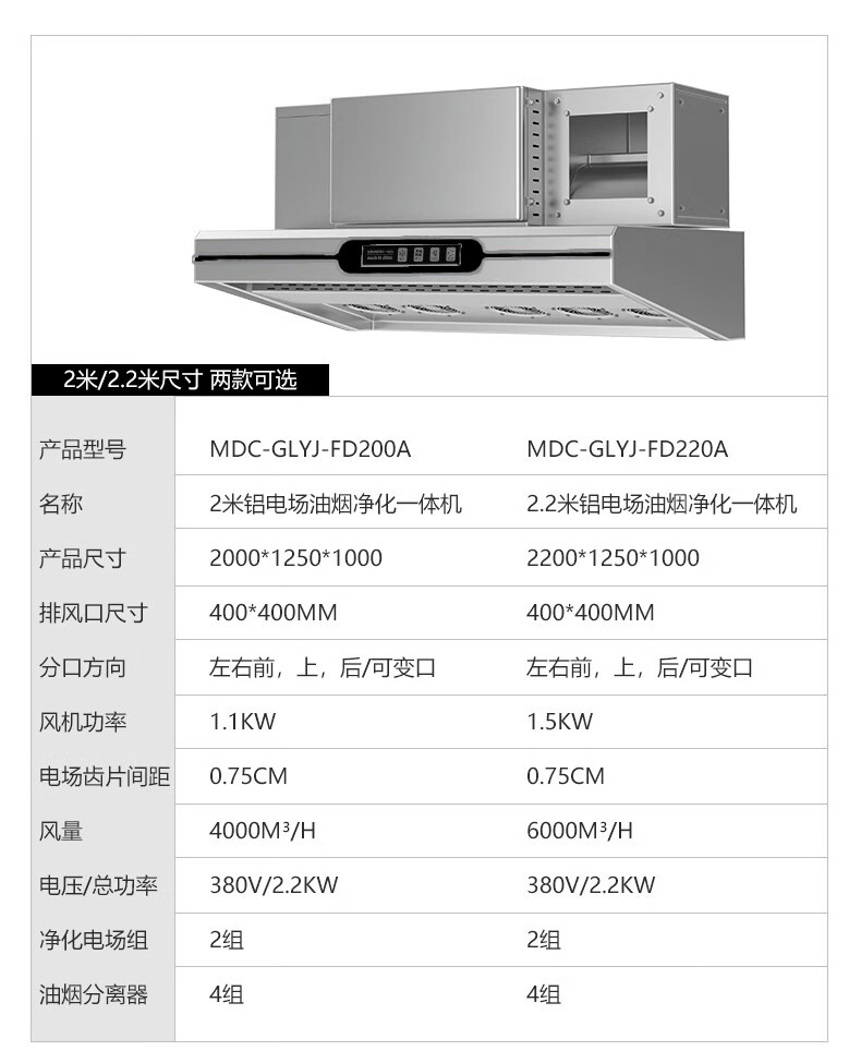 麦大厨商用2.0米铝电场油烟净化一体机380v