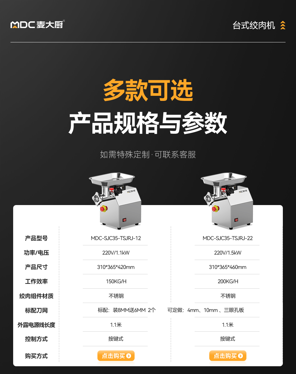 - 更多MDC商用绞肉机规格咨询在线客服