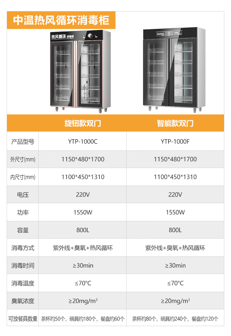 - 消毒方式:紫外线+臭氧+热风循环